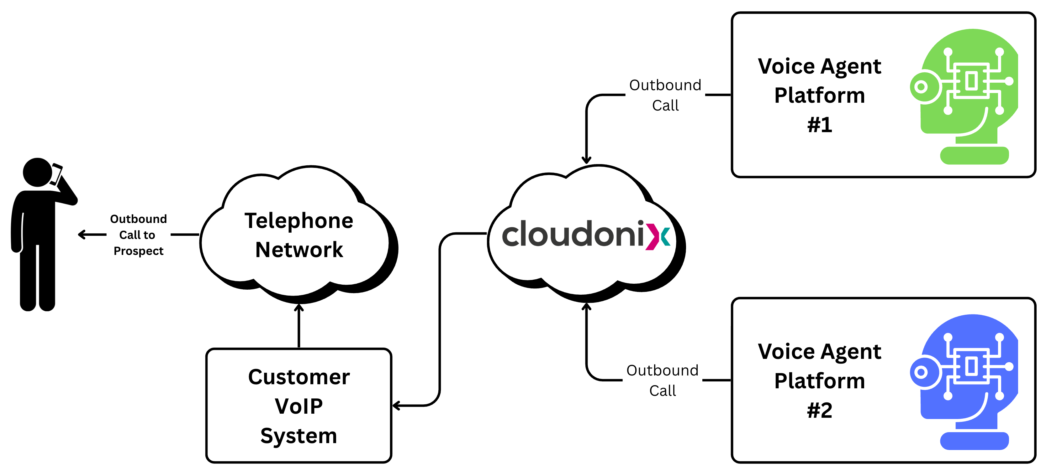 Voice agents can become a power multiplied for your outbound contact center staff. However, contact centers are far more capable of negotiating outbound calling charges with their telephony providers. With Cloudonix, customers can connect multiple, outbound calling voice agent platform - with the customers' existing phone system, leveraging the customers' telephony services pricing and interconnects.
