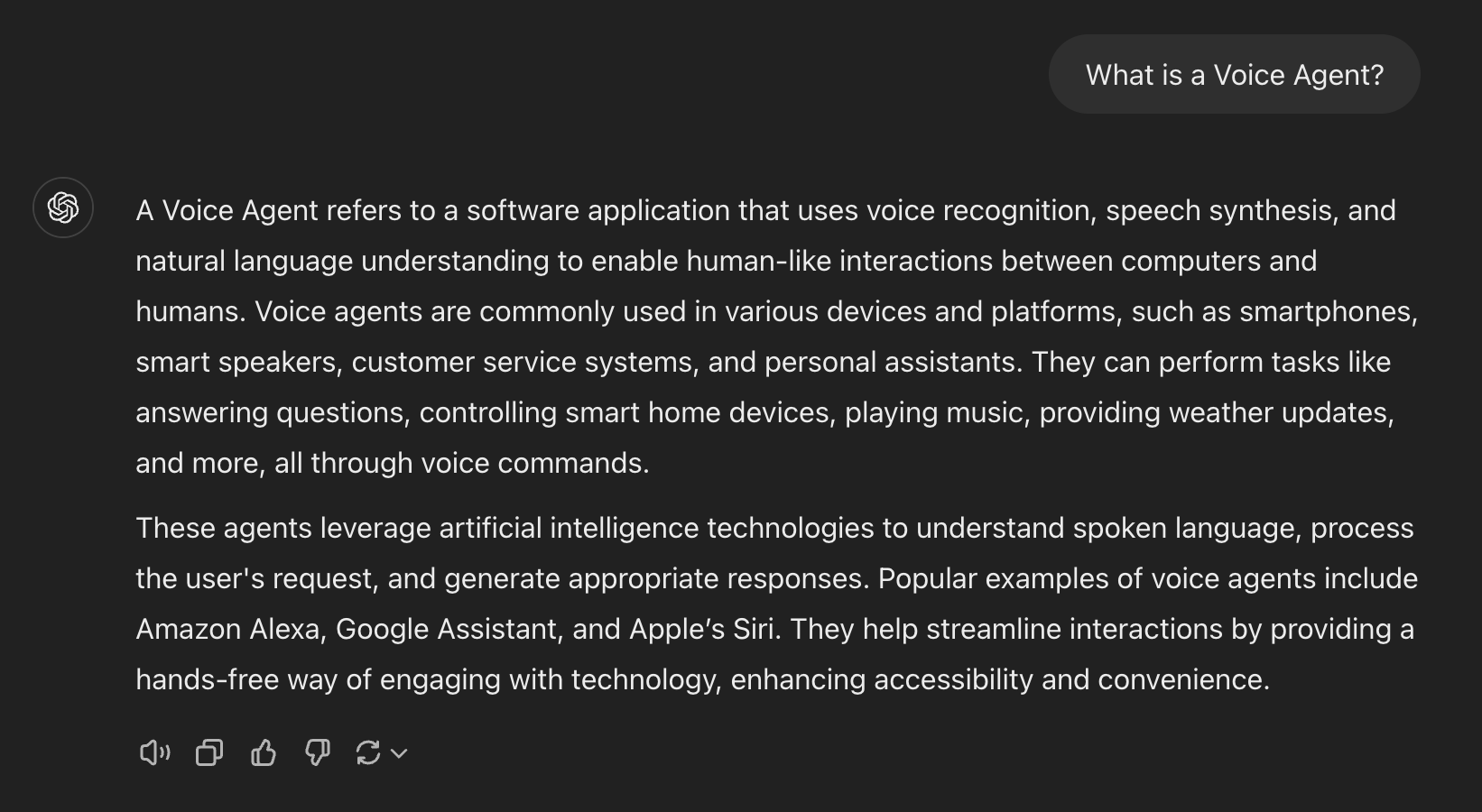 To explain what a Voice Agent is, let's ask the agent itself - via ChatGPT: