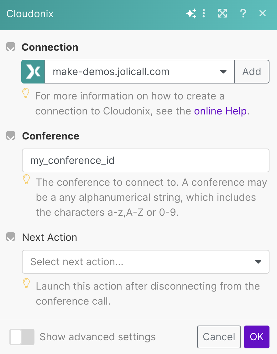 Conference Recording | Record the conference call. (Default: false ) |