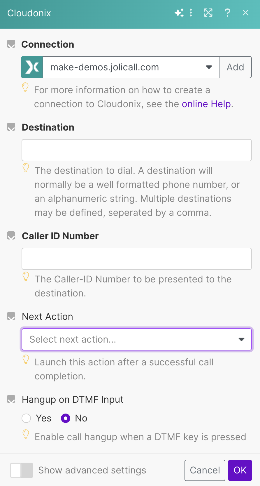 This module provides the developer access to the Cloudonix Dial Verb. Activating this module will instruct your currently running voice application to initiate a voice call to a remote destination.