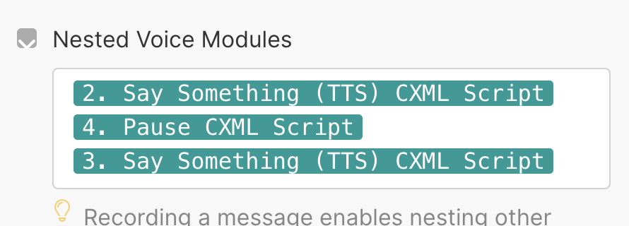 The voice modules that can be nested are: Say Something, Pause and Play.