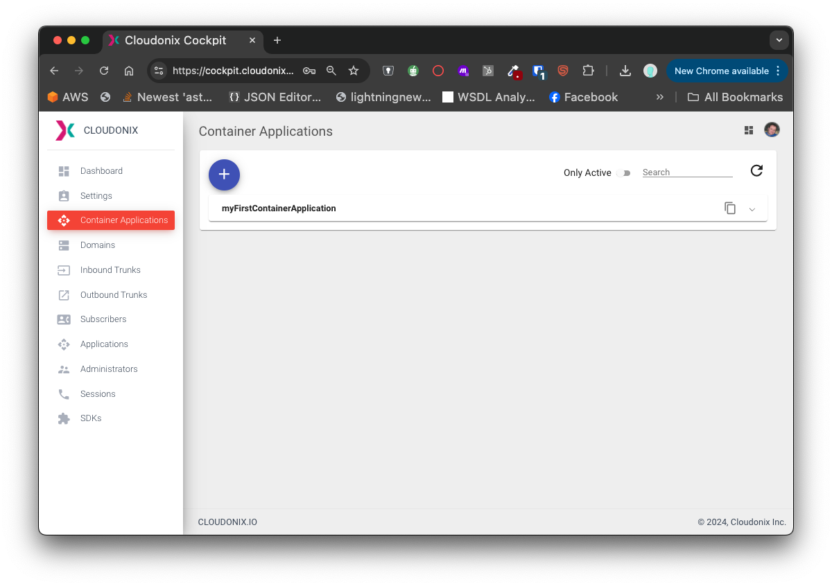 The Cloudonix REST API Data Models define a container application as: