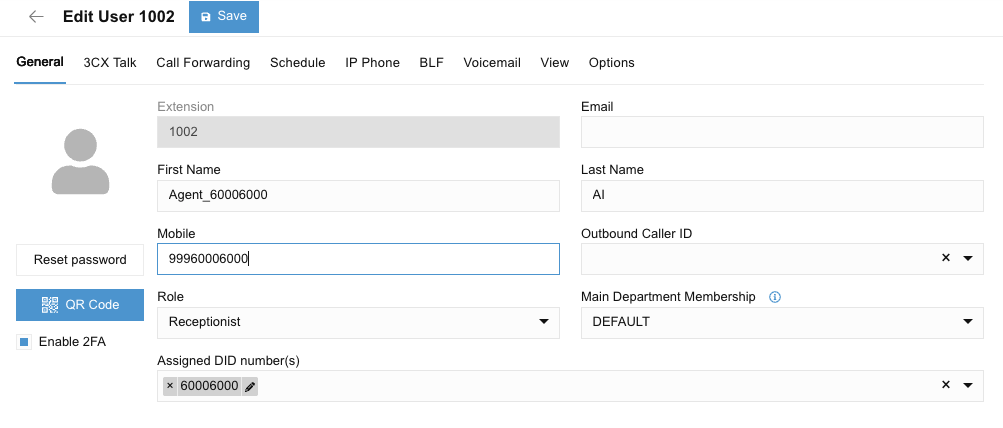 the outbound route to Cloudonix. Pay attention to select the Assigned DID number for this user. Once selected,