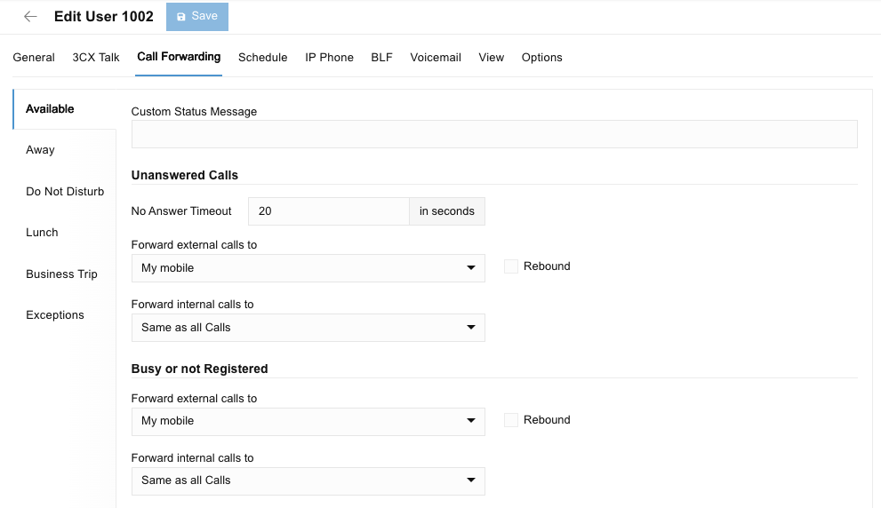 The achieve proper routing functionality, a Custom Call Script is required, which requires additional 3CX licenses.