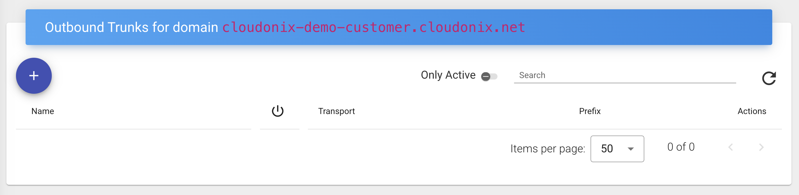 Logon to your Cloudonix account dashboard and select the Outbound Trunks menu option, the following screen will appear: