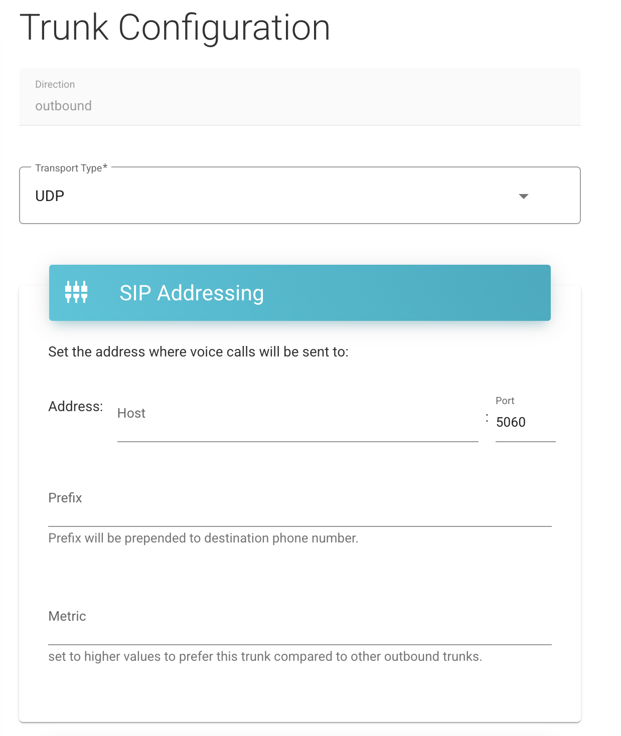 Click the plus button to create a new outbound trunk. In the Trunk name field, enter a description for your connection to Twilio.