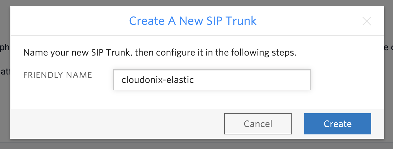 Click the Red Create new SIP Trunk button to create a new Elastic SIP Trunk, the following will appear: